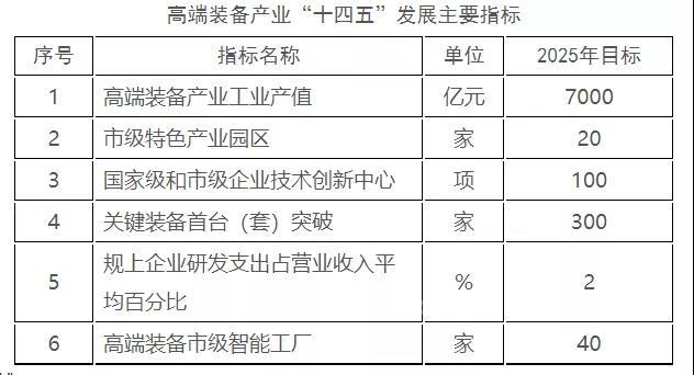 到2025年,全市高端装备产业规模持续扩大、综合实力稳步提升、新兴技术深度融合、基础能力显著增强,初步建成具有全球影响力的高端装备创新增长极与核心技术策源地。