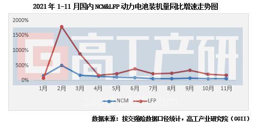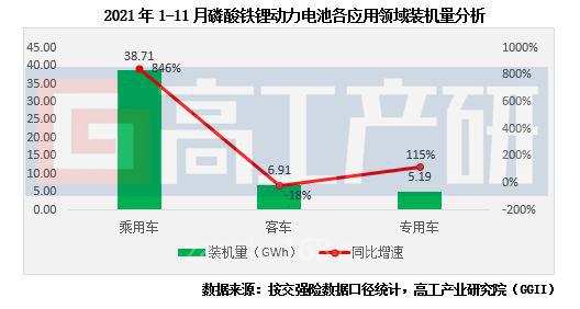 根据新能源汽车交强险口径数据统计显示,2021年1-11月国内新能源汽车配套LFP电池约116.6万辆,同比增长468%;LFP电池装机量约50.82GWh,同比增长240%。