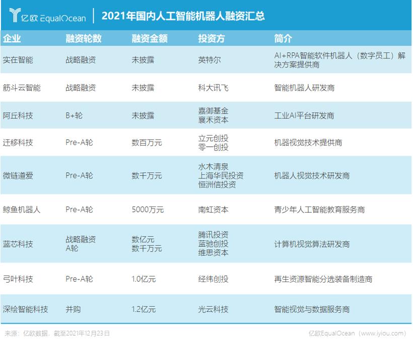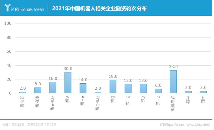 数据显示,截至12月23日,中国机器人领域新增融资事件共计165起,较2020年减少31.8%。但同期融资总额达196.1亿元,同比仅减少26.7%。这意味着,平均每家企业获得的融资金额在2021年上涨1.19亿元。