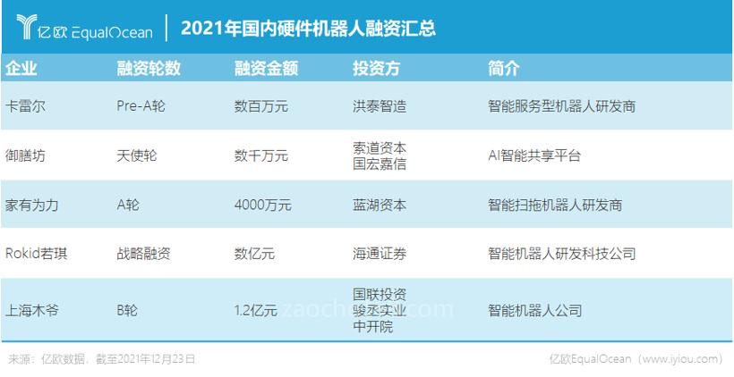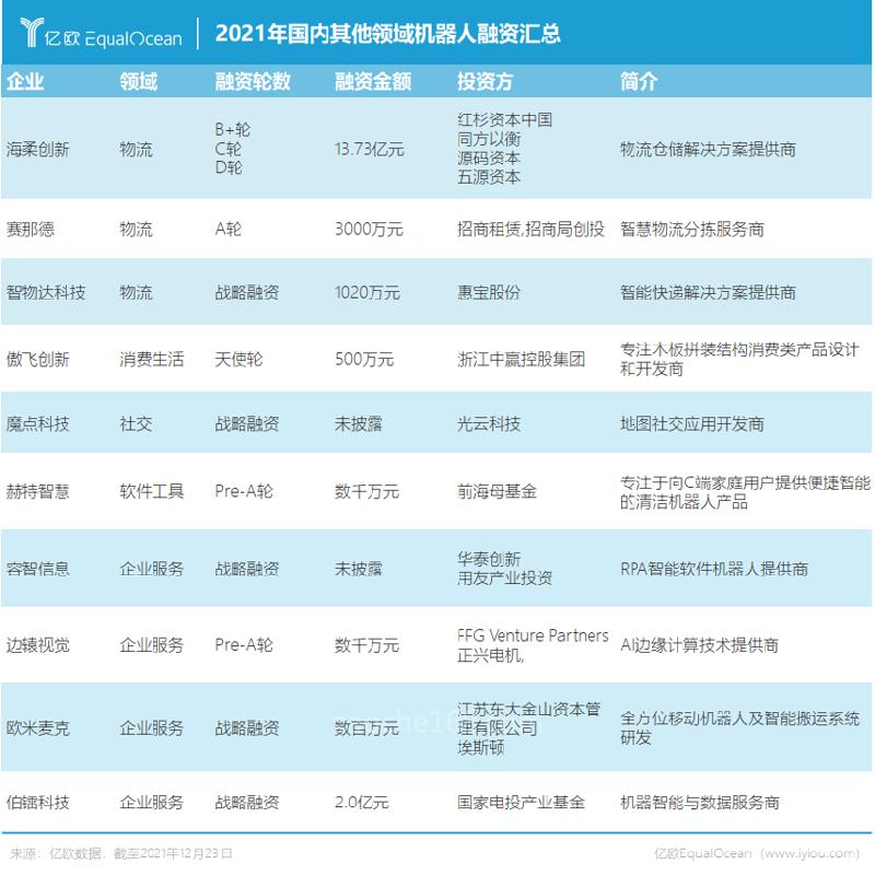 值得注意的是,2021年,中国有3家机器人相关企业成功登陆二级市场,分别为凯尔达、迈赫机器人和利元亨,均属于工业机器人领域。
