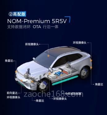 高配版NOM将基于5R5V的传感器配置及更大算力平台,实现高度集成的行泊一体智能化方案。行车方面,由于有环视摄像头做补充,将在拥堵等复杂场景下实现更低接管率;泊车方面,由于增加了前视远距离的摄像头,泊车速度将有所提高。