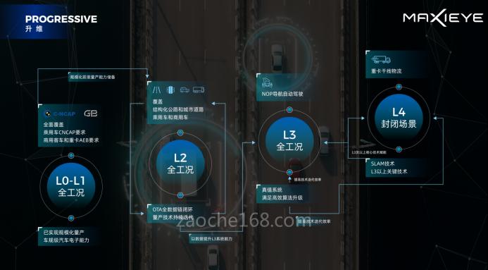 日前,智驾科技MAXIEYE从解决产业问题角度出发,面向行业发布了全新的智能驾驶分级理念,从L1到L4,依次解决人类出行的安全、舒适、效率、能耗问题。