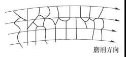 磨削裂纹的特征为裂纹细而浅,呈龟裂状或较有规则地排列成辐射状,垂直于磨削方向,严重地呈网状裂纹。龟裂状磨削裂纹如图6所示,其产生的原因如下。