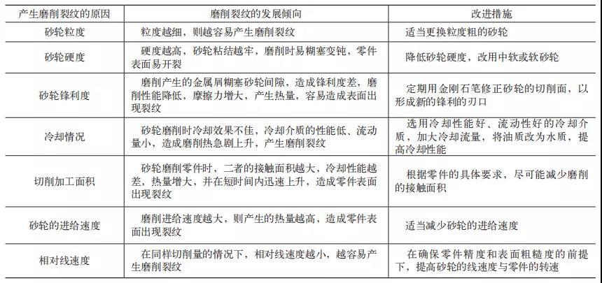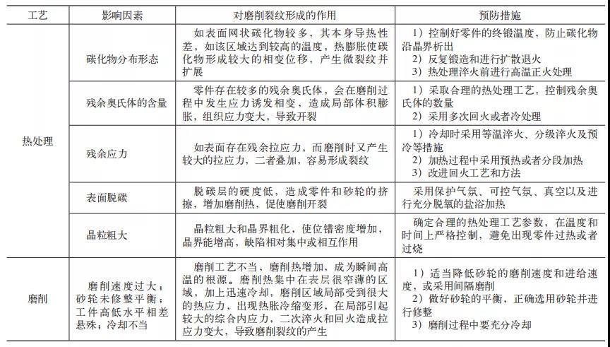 表2 磨削裂纹和工艺过程的关系及其预防措施