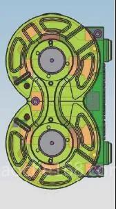 按照客户所提供的产品3D图,根据初始贴合状态,对模具上、下模进行分模设计,将分模后所得到的模面(见图3)导入AutoForm R6软件中进行整个拉深成形过程的有限元数值模拟,通过观察每道工序对成形过程中圆角半径和形状毛坯的改变,对比不同工艺参数对拉深质量的影响,从而预测潜在的成形缺陷,如拉裂、起皱等情况。