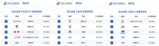新能源方面,在中国汽车品牌新能源一年保值率TOP榜单中,荣威Ei5、荣威ei6 MAX、荣威RX5 ePLUS分别以71.42%、74.76%、73.71%的保值率成为细分市场冠军,在紧凑型纯电动汽车、紧凑型插电混动轿车、紧凑型插电混动SUV市场都展现出强劲的竞争力;上汽科莱威CLEVER则位列微型纯电动汽车榜单TOP3,成为深受用户信赖的代步车。