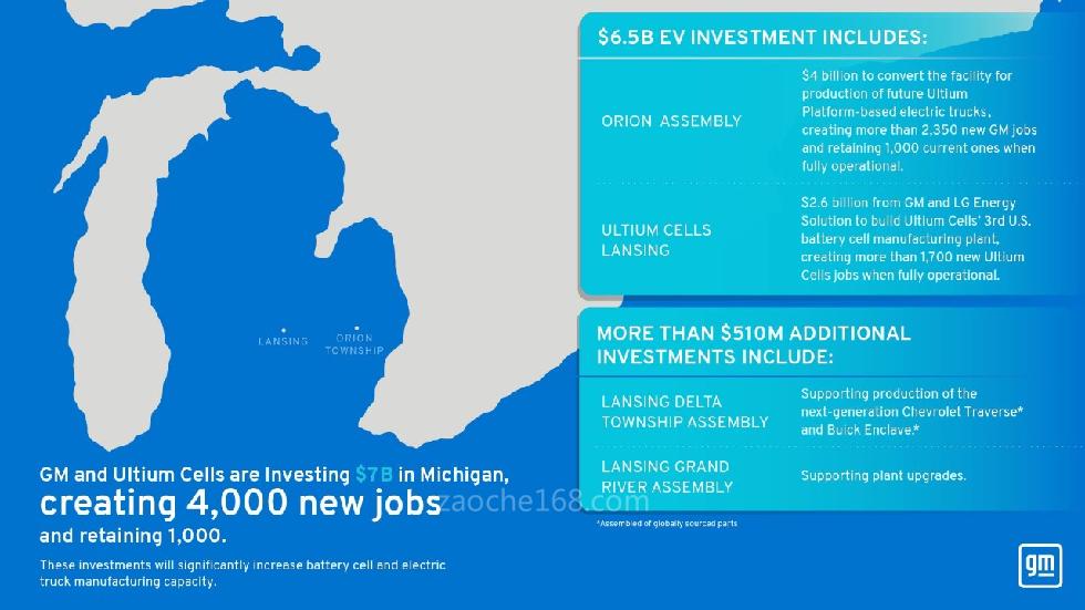 除了在密歇根州的电动汽车相关投资,通用汽车还在Lansing地区的两家汽车组装厂投资超过5.1亿美元,以升级其近期产品的生产能力,包括下一代雪佛兰Traverse和别克Enclave。