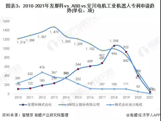 ——发那科 VS ABB VS 安川电机-工业机器人专利申请量及PCT申请量对比:ABB更具优势