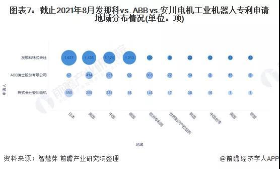 4)发那科 VS ABB VS 安川电机-工业机器人专利申请地域对比:日本为三者主要布局区域