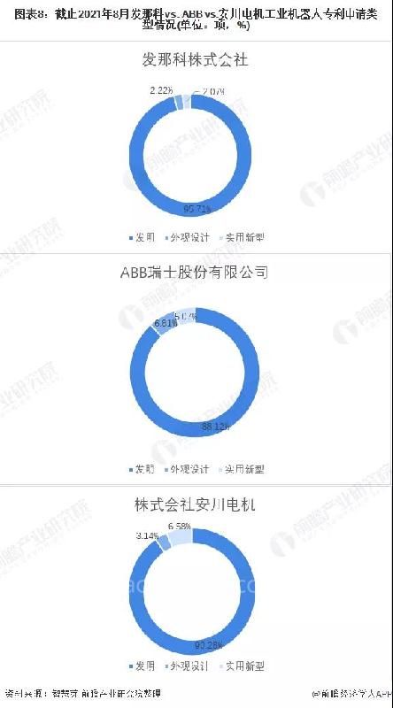 5)发那科 VS ABB VS 安川电机-工业机器人专利类型对比:三者均以发明专利为主
