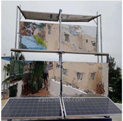 机械跟踪太阳能塔:带有反射器的太阳能光伏塔,配备低成本的可编程机电系统,可水平旋转太阳能塔。在这样的机制中安装单/双塔,整个系统带有面板和反射器,追循太阳的方向。在一天之中,面板以朝东方向开始,以朝西方向结束。到了第二天早上,面板又返回到朝东的位置。该创新跟踪系统不需要任何LDR传感器,只需要单轴跟踪,并且同一太阳能塔消耗的功率非常低。