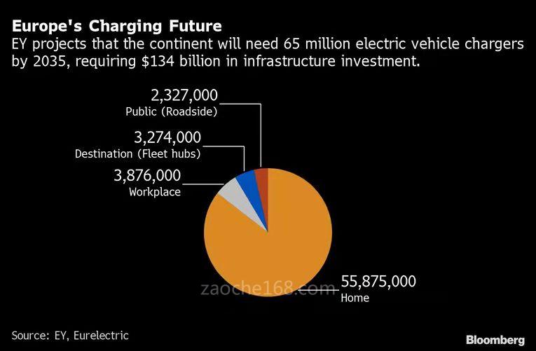 安永估计,欧洲大陆预计将需要6500万个充电桩来服务这些电动车,其中,85%的充电桩将安装在私人家中。