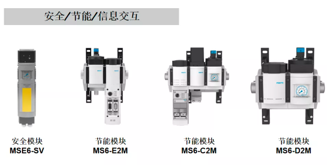 Festo MS系列气源处理装置既拥有基础两、三联件,又能通过功能集成,发展为更高阶的安全、节能模块。