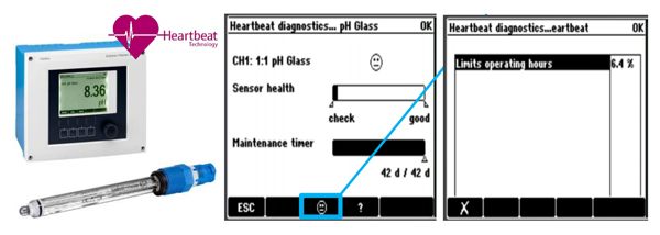 Belastungsfaktor该功能与 Heartbeat 心跳技术相结合,连同实时反馈上来的玻璃阻抗信号和自检信号,可对传感器的使用状态进行预防性提醒和干预,并且对电极的使用寿命做出准确预判。