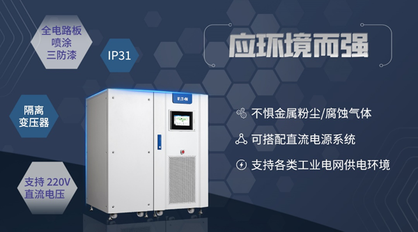 9EHD 2.0 全电路板喷涂三防漆,防护等级可达 IP31,配合 UPS 密闭柜体防尘设计和独立散热风道,降低积尘和腐蚀性气体带来的短路风险,更加适用于金属粉尘多的钢厂、潮湿的地下车站等物理环境。
