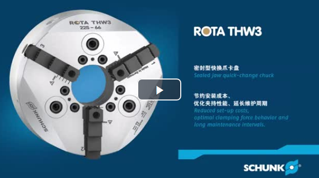 全屏ROTA THW3快换爪卡盘具有优化的几何外形,但真正让它脱颖而出的是其内在价值。产品开发人员在设计中不断减轻重量,减少了能耗,让车床的加速和制动速度更快。ROTA THW3配备了卡爪快换系统,卡爪重复精度 < 0.02 mm。卡盘可以快速、精确地适应不断变化的夹持任务,尤其适合中小批量生产的用户使用。