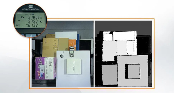 结合最新的时域隔离、宽动态及多帧融合技术,MV-DB1300A相机具有优异的抗环境光能力,在30000Lux光照条件下,仍能还原完整的深度信息。