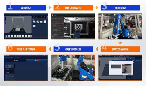 RobotPilot面向实施交付总结了一套六步部署法,并以流程引导的方式融入到软件的设计中,通过六步部署,用户可快速完成视觉引导应用的搭建。