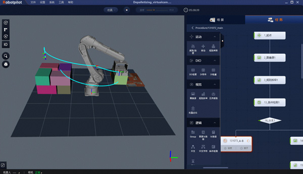 软件内置轨迹规划、碰撞检测及抓取规划等多种智能算法,实时规划机械臂行走路径。
