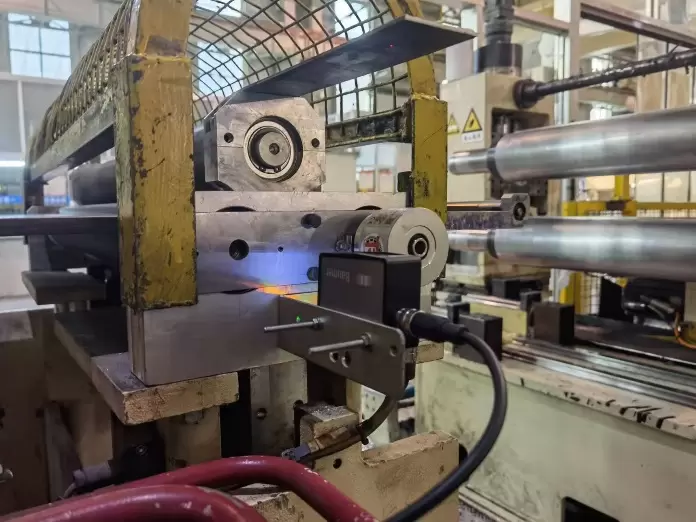 钢带轧制的冷轧机,是一种比较常见的设备,其内部的轧辊负责将钢带轧制成型,然后再进行打捆包装,运输至下游客户。但长时间工作下的轧辊会因为所受力的波动而在水平方向上发生偏移,从而造成钢带成品厚度的不均匀、钢带精度降低,甚至出现断带,影响产品质量。但是有了堡盟OM70检测方案的庇护,解决轧辊偏移这种小麻烦自然不在话下。