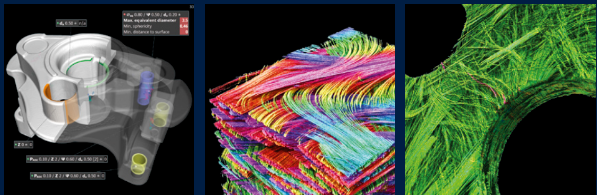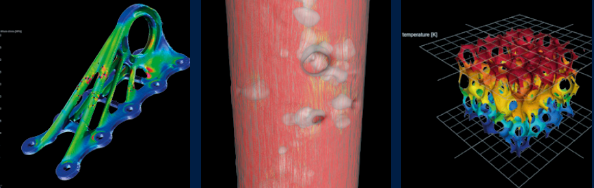 基于CT扫描出的数据,VG软件可以直接创建出准确而高质量的四面体体积网格。这些体积网格可用于第三方FEM模拟软件中的机械结构、流体、热力、电力等模拟。用户不再需要创建中间表面网格,避免了几何信息和准确度的丢失。例如在结构力学模拟中,只需点击一下鼠标,即可添加孔隙度分析的结果,以模拟缺陷周围的应力集中。其分析的结果已经通过了试验性测试与传统FEM模拟的验证。