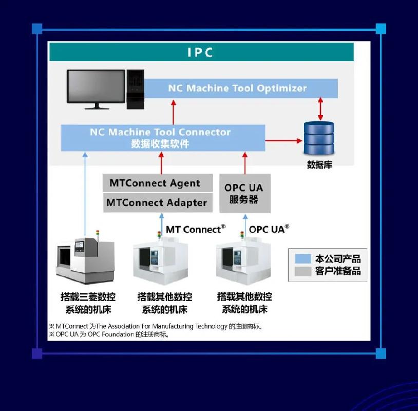 通过适用于生产设备的自定义设置,可以监控搭载三菱电机及其他品牌数控系统的机床。