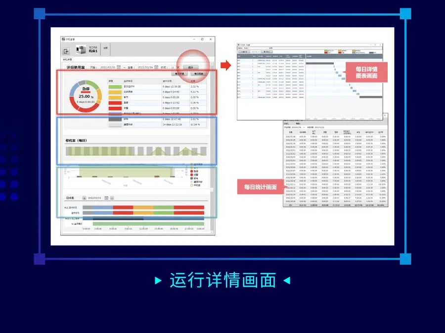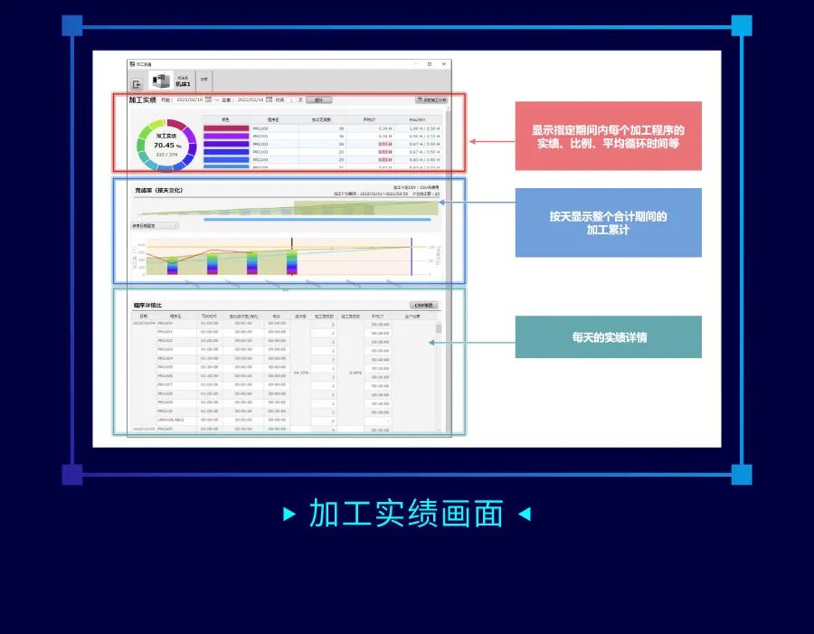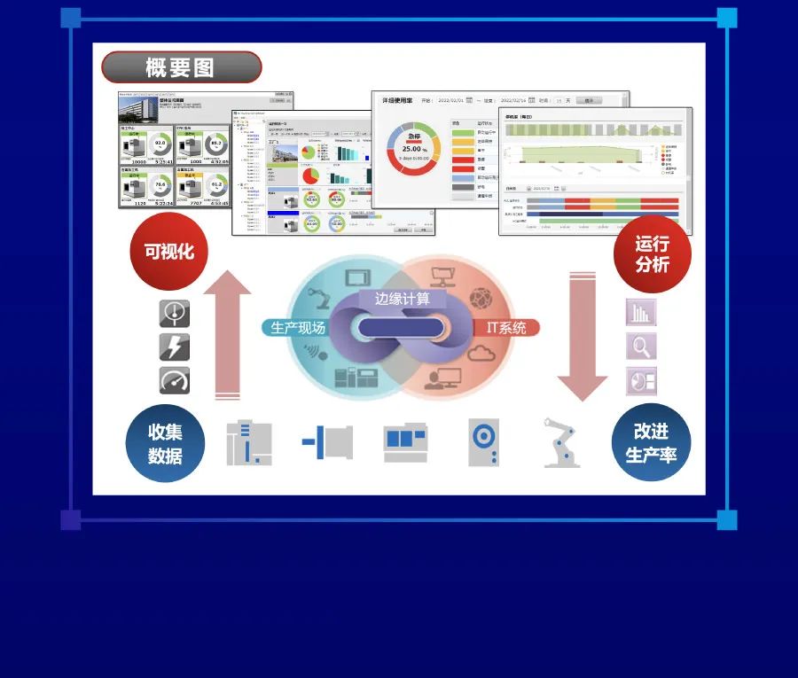 通过运行状态、停止因素、加工实绩、报警分析等各种功能,促进生产现场的改善活动,支持各厂区之间的远程监控。