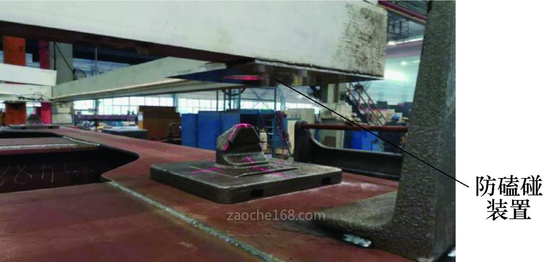 2)无障碍激光定位创新设计。打破传统刚性定位方式,创新设计激光非接触定位[2],在8个锁头的上方采用360°可调整的激光探头,投射出十字激光定位线,十字交点即为锁头鹰嘴定位(见图2),线条即为锁座的横向、纵向中心定位线,用来调整锁座是否摆正,激光投射装置离车体上平面距离较大,锁闭装置组装空间大,方便操作并且工装吊出时与配件无接触(传统工装与工件贴严,工装大而重,吊出时很难把控工装的平衡,定位块与工件易摩擦磕碰,造成定位块变形,影响工装的定位精度),组装完成后定位焊时,由于工装与工件分离,可避免焊接飞溅对工装精度的影响。组装时只需将锁头上鹰嘴红点及锁座中心分别与激光十字线对齐即可,操作简单方便,质量可靠,同一侧锁座的直线度得到保证。