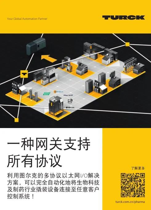 目前,制药行业的模块化装置制造正受益于组件的标准化趋势。而这正是图尔克面向机器和设备制造商的多协议I/O解决方案发挥作用的地方。
