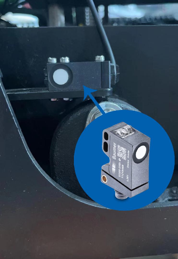 为了配合AGV车辆在实际中的表现,堡盟采用了U300超声波传感器方案。堡盟U300.P50-GP1J.72N在这项应用中,发挥了体积小巧,测量灵敏度高的优势,在实际使用中,超声波传感器安装在AGV小车叉臂的底端。