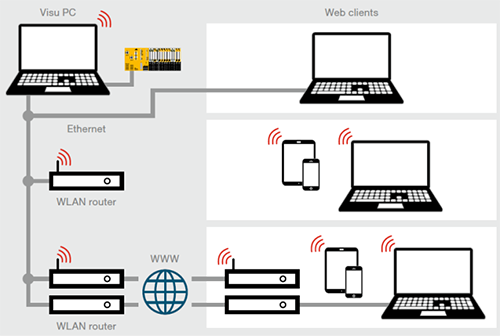PASvisu服务器可以管理所有连接的网络浏览器之间的数据交换。采用HTML5网络技术,几乎可以在任何基于HTML5浏览器终端的设备中,如PC、平板电脑或智能手机,实现网络远程访问及跨平台访问。