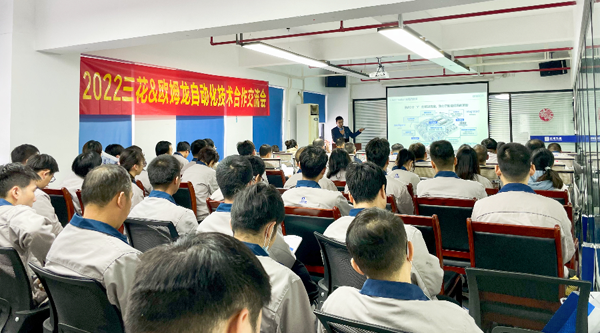 近日,欧姆龙自动化(中国)有限公司(以下简称“欧姆龙”)与三花控股集团有限公司(以下简称“三花”)技术合作交流会在杭州召开。欧姆龙与三花及其子公司高层领导和技术专家近百人出席交流会。