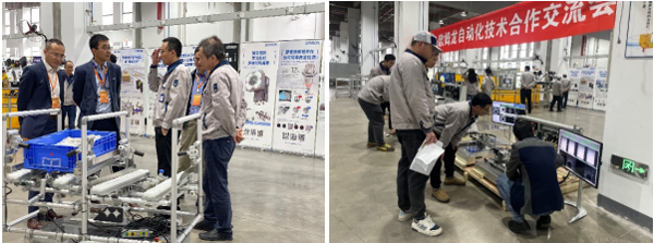 三花技术专家对欧姆龙产品技术及解决方案赞誉有加,双方在现场进行了沟通和交流,欧姆龙针对三花个性化课题指出方向并给出建议。