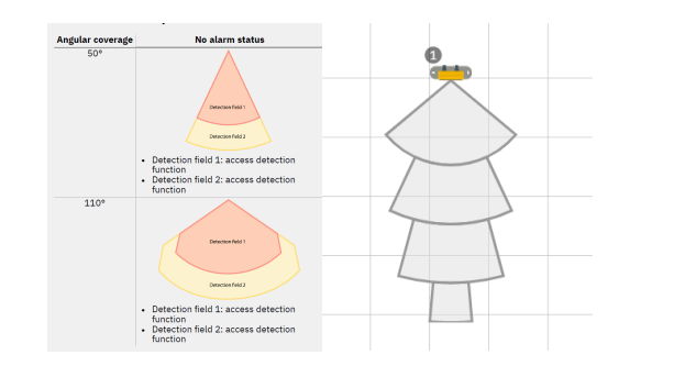 1.一代安全雷达,保护区域只能设置为窄区域(50°)和宽区域(110°),检测区域固定,对于复杂的应用环境无法进行灵活的设置;而二代安全雷达可以进行10-100°的保护区域调节,可以根据实际环境特点进行合理的配置。一代安全雷达只能具有2个检测区域,并且前置区域无法进行调整,而二代安全雷达可以独立设置4个检测区域的范围,并给出4个检测区的状态信号。