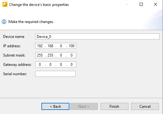 1. 在软件工具PAS4000中选择自己所需要性能类型的PSS 4000头模块,赋予头模块所要求的设备名称(Device name)和IP地址(IP address)等。