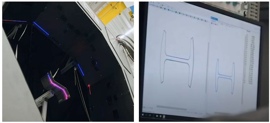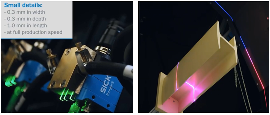 钢材成型出厂前,需要对型材进行全尺寸轮廓检测。使用SICK 3D相机可更好地解决生产线上高速检测、多种类柔性线兼容问题,而且替代了人工,实现产线全检,并且自动将型材尺寸上传到数据库中存档。