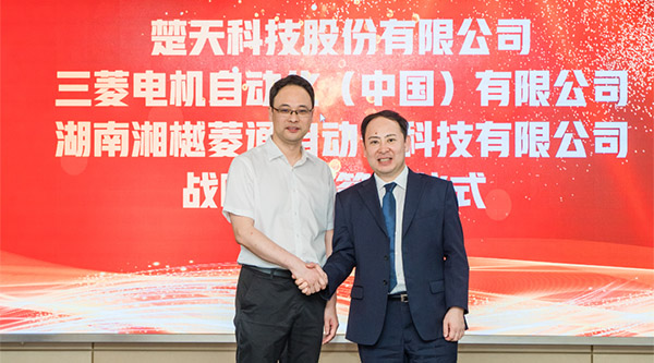 6月13日,三菱电机自动化(中国)有限公司(以下简称“三菱电机”)经营企划室室长山本圭太、湖南湘樾菱通自动化科技有限公司(以下简称“湘樾菱通”)总经理周振国等一行前往湖南宁乡,与楚天科技股份有限公司(以下简称“楚天科技”)签署战略合作协议,楚天科技执行总裁曾凡云、高级副总裁谭亮、高级副总裁肖绍贵等出席签约仪式。
