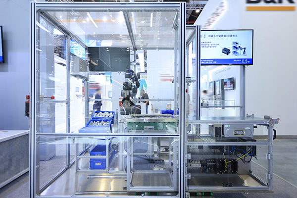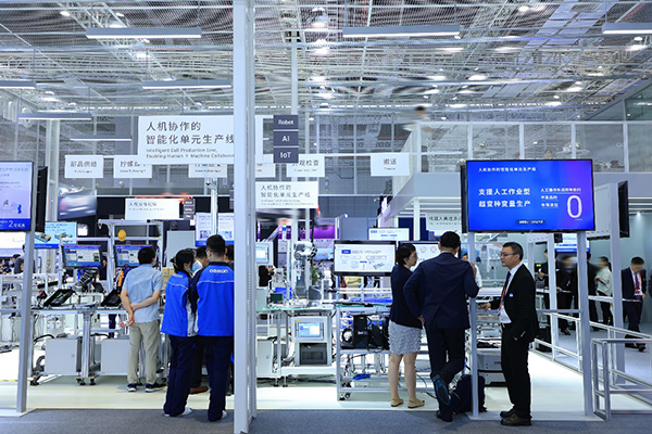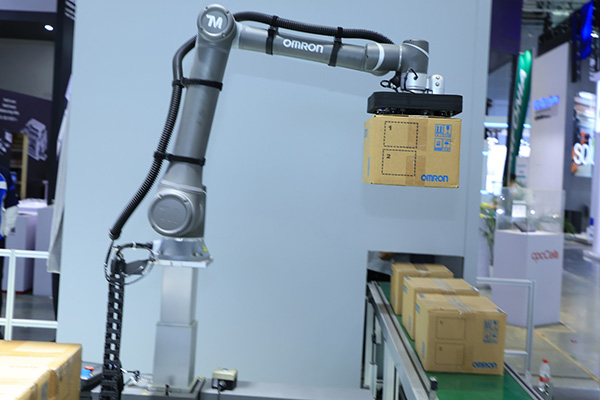 “人机的高度协作”展区内,展示了CLCS人机协作的智能化单元生产线、人机协作码垛等,让机器随机应变地替代人类完成单纯作业、进行支援和协助,在将人类从超负荷身心重压下解放出来的同时,提高劳动生产效率,实现基于“人机无缝协作”的制造业。