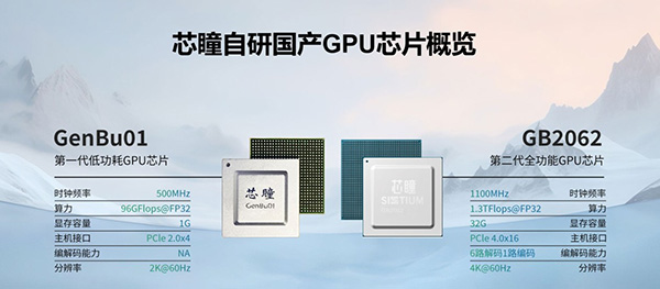 从产品迭代史上来看,芯瞳在2020年8月推出了第一代GPU芯片GenBu01,这款具有里程碑意义的一款通用GPU采用了自主知识产权的统一渲染架构设计,支持2D和3D图形渲染,功耗仅3w,可应用于嵌入式计算及设备、办公电脑和定制化场景所需显示设备等。而本次发布会是基于第二代自研GPU-GB2062打造的板级产品,相比第一代更具跨时代的意义。