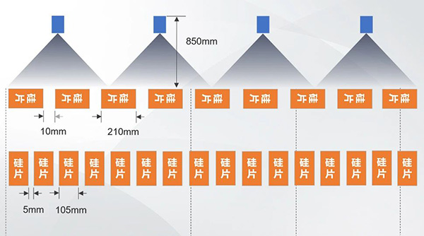 来料方式:210mm*105mm硅片,横向排列9个,竖向排列16个