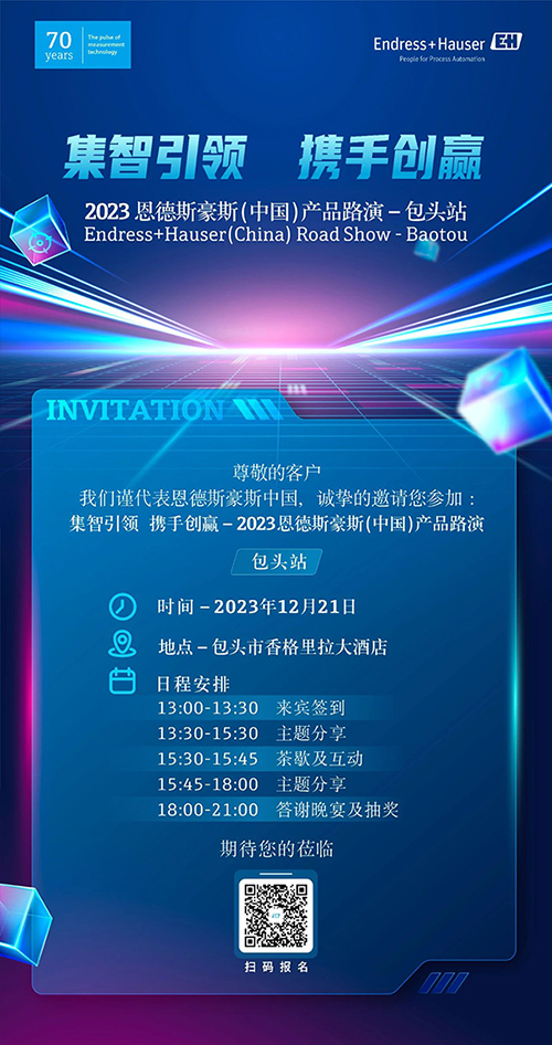“集智引领 携手创赢 – 恩德斯豪斯(中国)2023 产品路演·包头站”将于12月21日在内蒙古·包头·香格里拉大酒店举办。