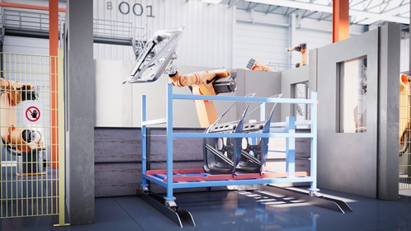 在汽车工业中,工件载具用于在各个制造工序之间运输工件。它们借助机器人进行装卸。为了确保将工件快速平稳地送至下游工序,对各个工件的识别以及对其装载空间的可靠检测至关重要。机器控制系统必须知道下一步所要加工的工件。工件载具的不断移动给用户带来了额外挑战。