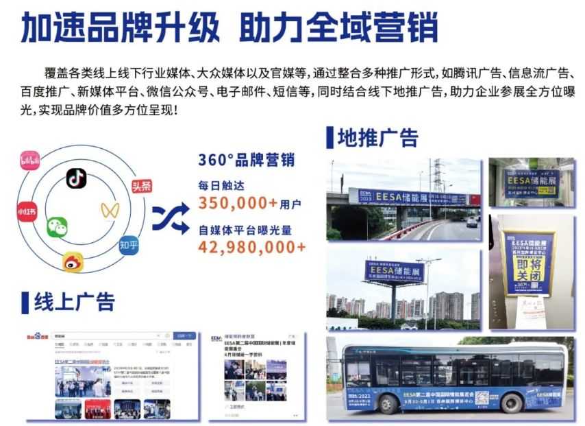 EESA储能展是由储能领跑者联盟主办的品牌展会,创办至今已经连续举办了两届。为加快适应储能规模化 发展的步伐,促进储能行业进一步良性发展,共促新能源产业的融合,第三届EESA储能展将于2024年9月2日-4日在国家会展中心(上海)举办。展览规模、展商数量、观众数量即将迎来又一波新高,借助上海独特的对外窗口效应以及地处长江经济带的区位优势,本届展会将帮助各大参展商进一步实现国际化营销,夯实国内品牌影响力,进一步整合行业资源,助推更多项目落地。