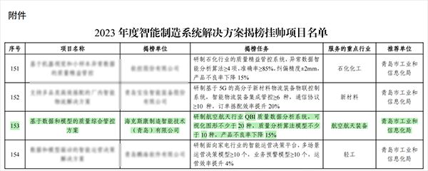 日前,国家工业和信息化部公布了2023年度智能制造系统解决方案揭榜挂帅项目名单,全国共有161个项目上榜,其中海克斯康制造智能技术(青岛)有限公司 “基于数据和模型的质量综合管控方案”成功入选。