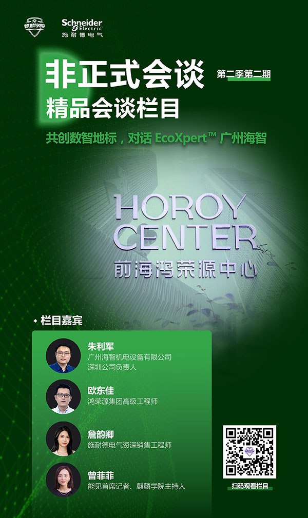 由全球能源管理与自动化领域的数字化转型专家施耐德电气打造的全新一季精品会谈栏目“非正式会谈”第二季正火热播出,并于近日正式上线了第二期节目。在本期会谈中,广州海智机电设备有限公司(以下简称广州海智)深圳公司负责人朱利军及鸿荣源集团高级工程师欧东佳作为特邀嘉宾,与施耐德电气资深销售工程师詹韵卿一起,就EcoXpert™合作伙伴计划的数字化赋能和深圳前海鸿荣源中心项目的建设展开深度讨论,为观众带来智能楼宇领域的前沿实践经验分享。