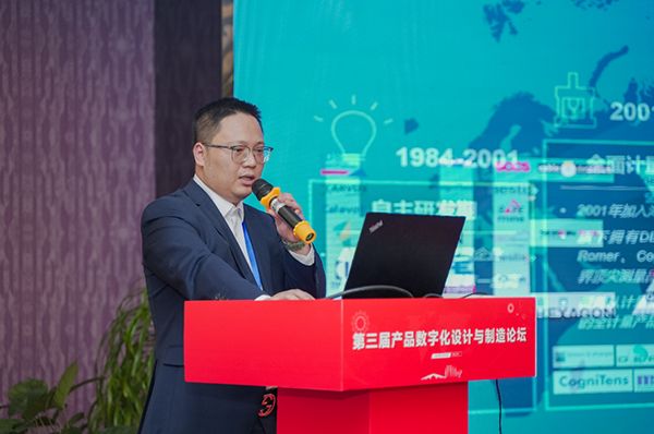 本次论坛聚焦数字化技术在产品设计、生产制造、质量管理等方面的应用与实践。海克斯康制造智能苏州方案中心营销总监栾杰在会上发表了题为“赋能智能制造与先进技术解决方案”的主题演讲。他表示,在数字化转型热潮之下,任何新兴技术最终都要服务于提升效率、降低成本的最终目标。如何实现产品与运营的数字化?如何把设备、资源、运营等以数字化的方式呈现,实现从物理层面到数据层面的转化?通过资产层面的数字化,向上传递到业务层,处理之后再到战略层,最终实现决策的透明化和快速化是数字化转型的关键。