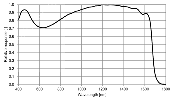 MV-CI013-GS-NN支持0.4 ~ 1.7μm 宽光谱成像,将可见光和短波波段的响应融于一台相机,打破了原先仅仅响应于可见光或者SWIR波段的传感器局限,有助于削减系统成本,通过减轻图像处理负荷提升处理速度,大幅度扩展检测对象的领域和范围。