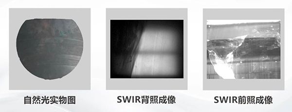 硅在 1.1μm以上的波长下是透明的。因此,在最佳波段1.5μm的短波下,相机可拍摄到硅片的底层结构,可检测硅片隐裂等缺陷;或拍摄TFT显示屏的背面,检测触点质量。