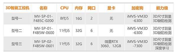 1海康机器人新推出了3D智能工控机,内置的VM3D集成了超过70个3D算子,结合2D功能,实现“2D+3D+AI”解决方案。3D智能工控机不仅方便广大客户进行相机硬件配单,还将高效质控作为核心,使得质控更精准、生产更轻松!