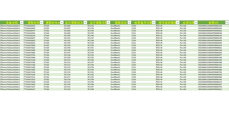 基于西克RFID灵活的报文定义功能,我们可以非常便捷快速统计读取效果,同时对信息做汇总,如下图: